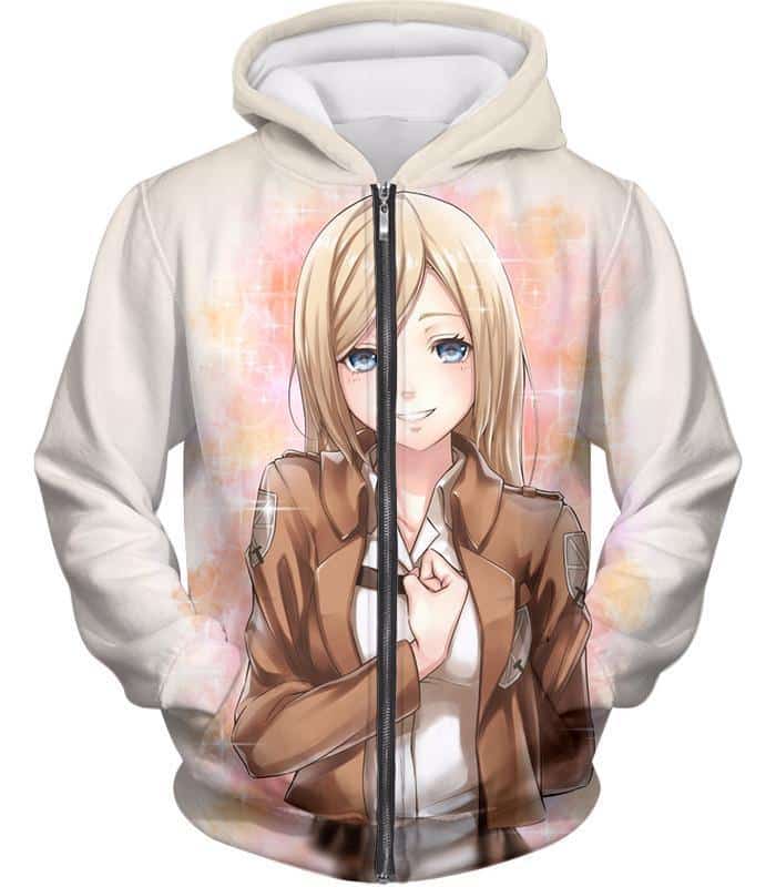 Attack On Titan Beautiful Soldier Krista Lenz White Zip Up Hoodie
