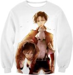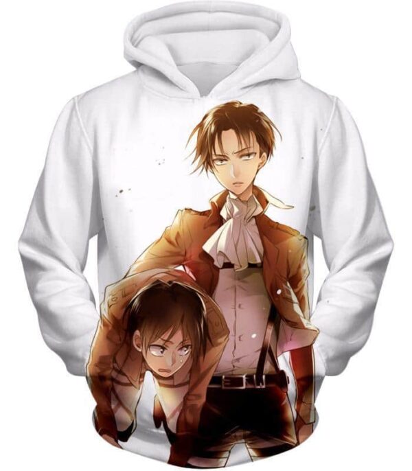Attack On Titan Hoodie – Attack On Titan Captain Levi X Eren Yeager Cool Anime Promo White Zip Up Hoodie
