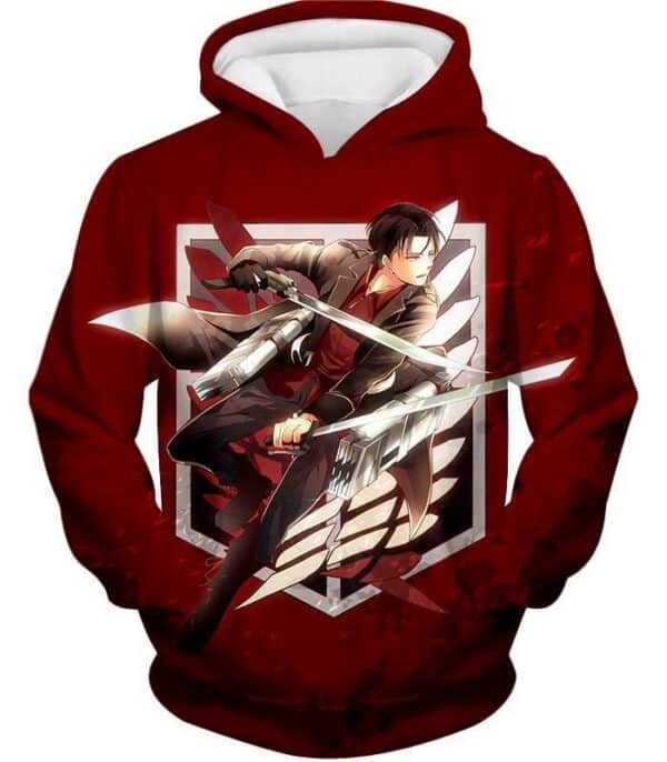 Attack On Titan Hoodie - Attack On Titan Humanitys Strongest Soldier Levi Ackerman Of Survey Corps Cool Red Hoodie
