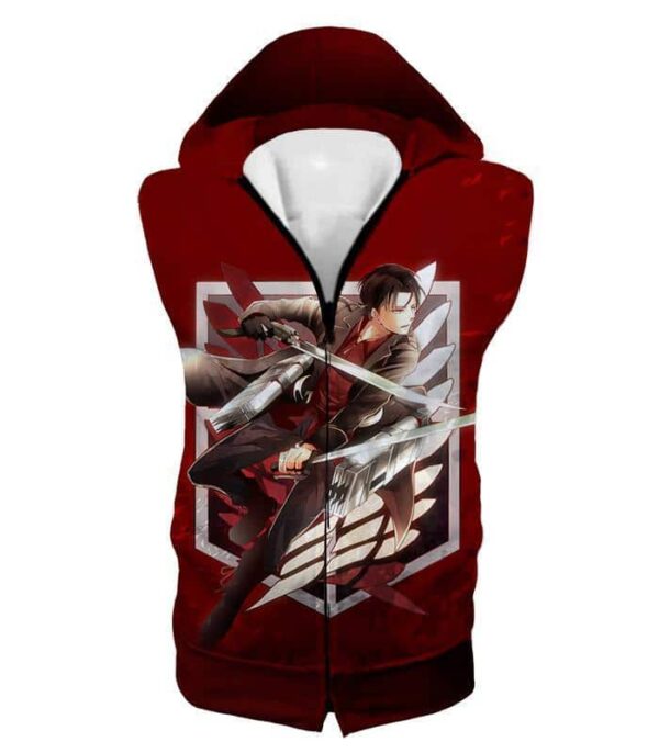 Attack On Titan Hoodie – Attack On Titan Humanitys Strongest Soldier Levi Ackerman Of Survey Corps Cool Red Zip Up Hoodie