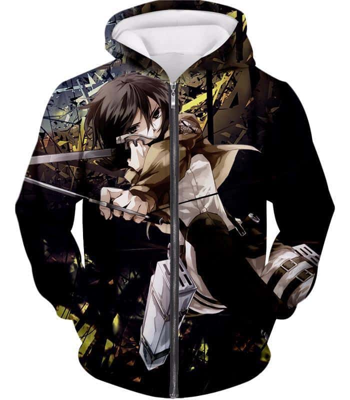 Attack On Titan Mikasa Ackerman Wings Of Freedom Black Zip Up Hoodie
