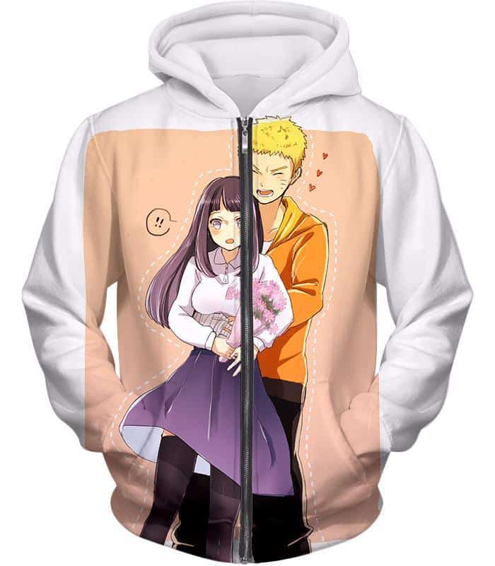 Boruto Best Ninja Couple Boruto And Hinata Romantic White Zip Up Hoodie