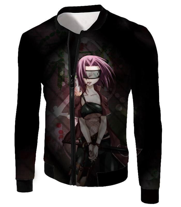 Boruto Sexy Pink Haired Ninja Haruno Sakura Black Zip Up Hoodie