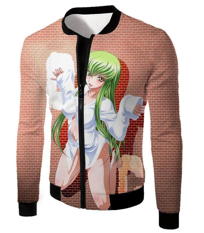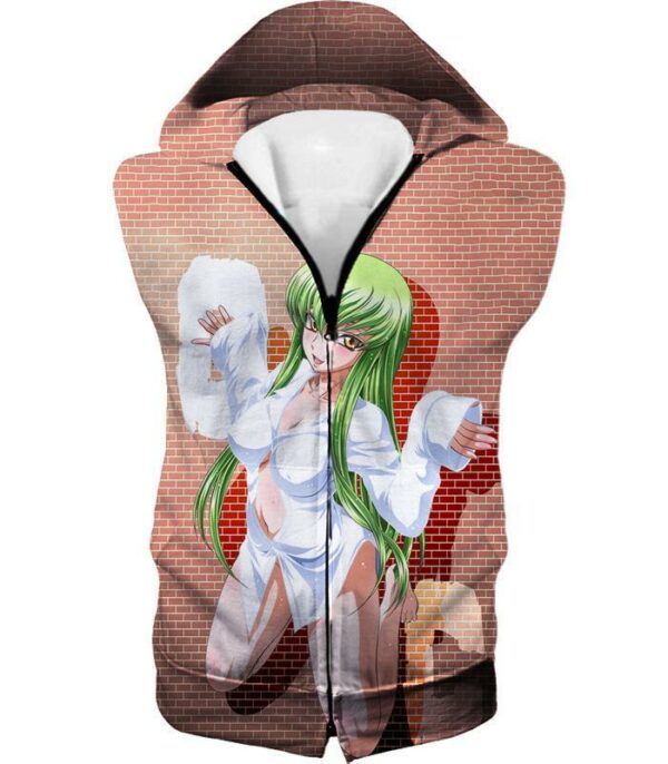 Code Geass Green Haired Anime Beauty C.C Promo Cool Brick Patterned Hoodie