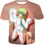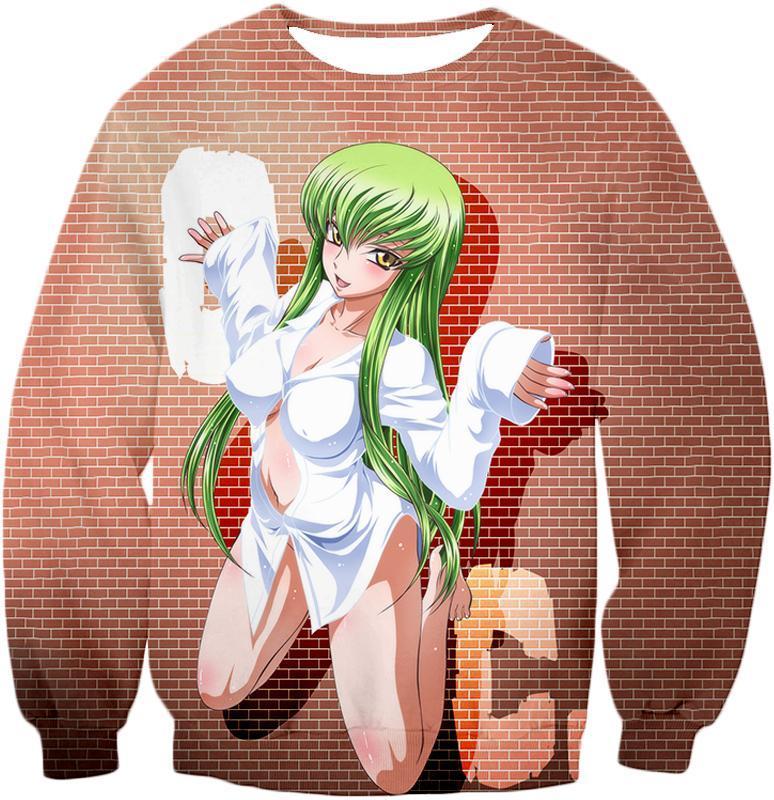 Code Geass Green Haired Anime Beauty C.C Promo Cool Brick Patterned Zip Up Hoodie
