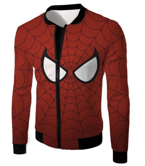 Cool Spider Net Patterned Spidey Eyes Red Zip Up Hoodie