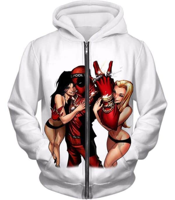 Dead Pool Zip Up Hoodie – Playboy Hero Deadpool White Zip Up Hoodie