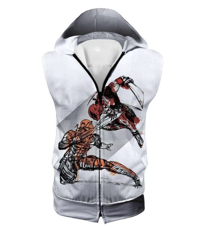 Deadpool Hoodie – Art Deadpool Vs Deathstroke Action White Hoodie