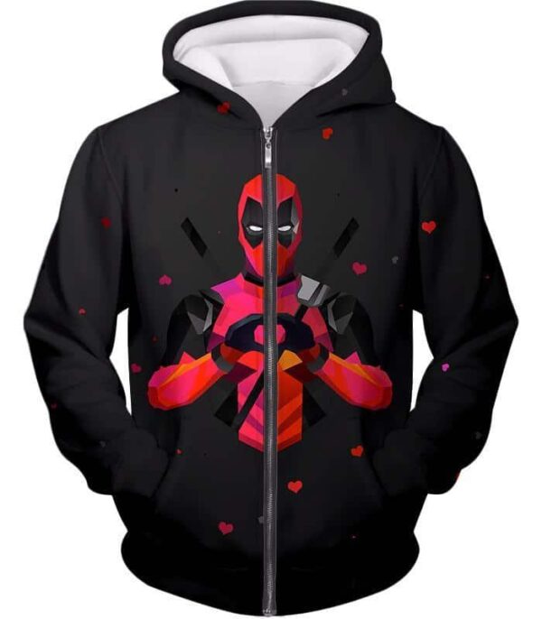 Deadpool Zip Up Hoodie - I Heart Deadpool Graphic Black Zip Up Hoodie
