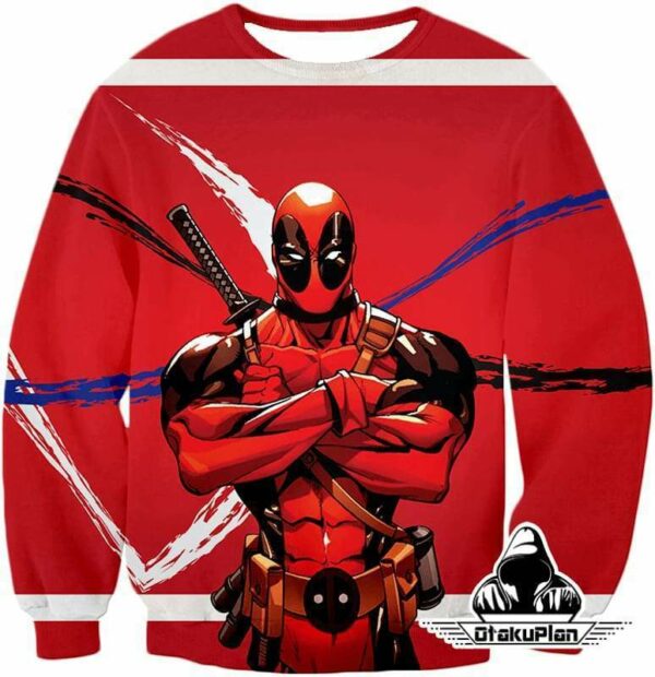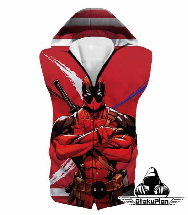 Deadpool Zip Up Hoodie – Muscular Mutant Hero Deadpool Pose Red Zip Up Hoodie