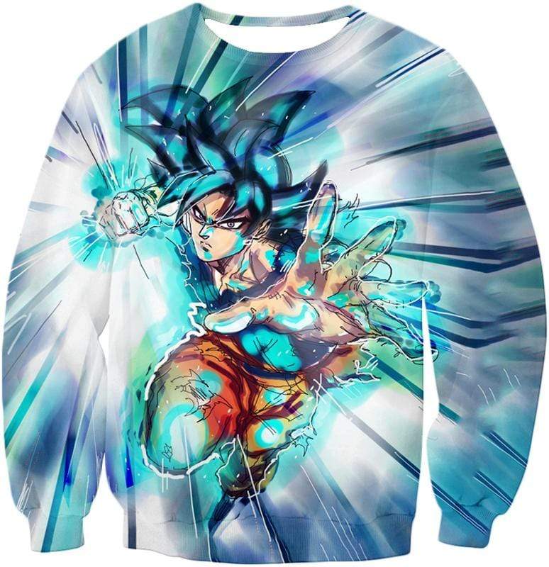 Dragon Ball Super Cool Goku Super Saiyan Blue Ultra Instinct Action White Zip Up Hoodie – DBZ Hoodie