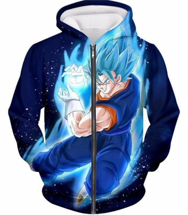 Dragon Ball Super Vegito Super Saiyan Blue Cool Action Blue Zip Up Hoodie - DBZ Clothing Hoodie