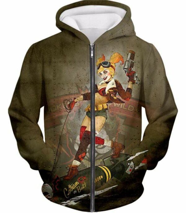 Extremely Wild And Crazy Super Villain Harley Quinn Animated Action Zip Up Hoodie
