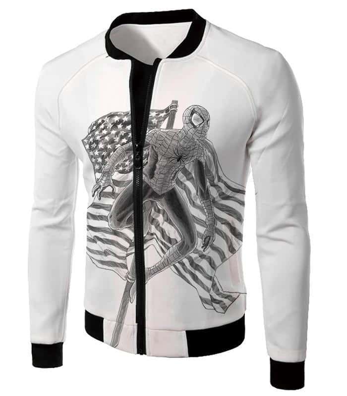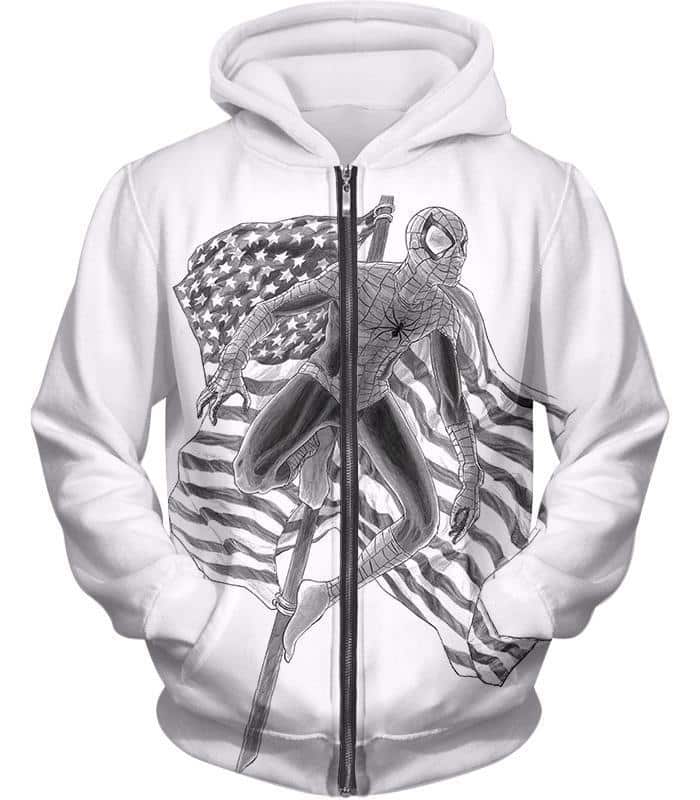 Favourite American Hero Spiderman Sketch White Zip Up Hoodie