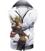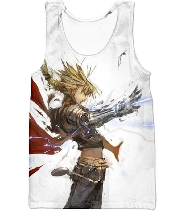 Fullmetal Alchemist Art Edward Elrich Action Pose Cool White Zip Up Hoodie