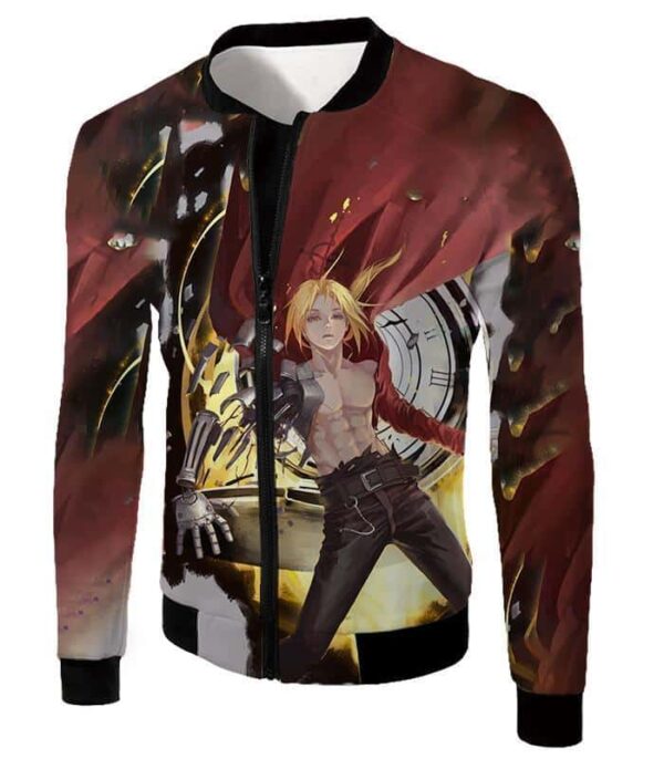 Fullmetal Alchemist Cool Edward Elrich Anime Action Broken Automail Graphic Zip Up Hoodie