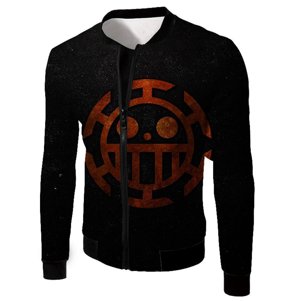 One Piece Zip Up Hoodie - One Piece Heart Pirates Flag Logo Black Zip Up Hoodie