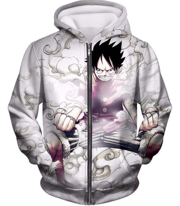 One Piece Hoodie – One Piece Pirate Hero Monkey D Luffy Action White Hoodie