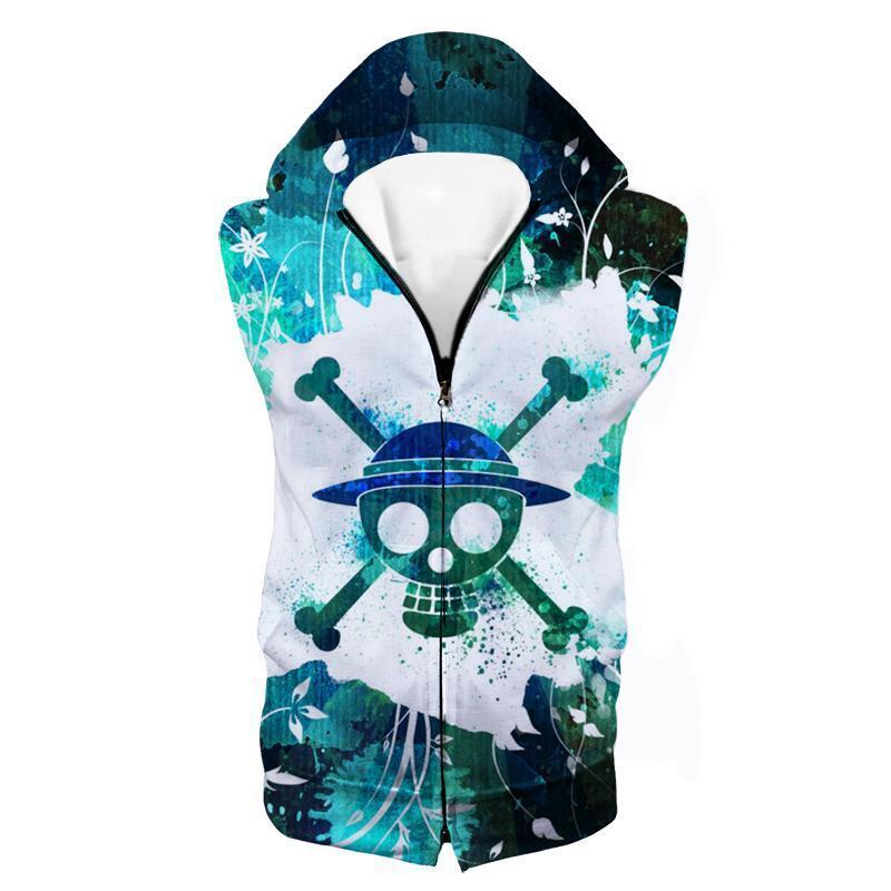 One Piece Zip Up Hoodie - One Piece Straw Hat Pirate Logo Psychedelic Print Zip Up Hoodie