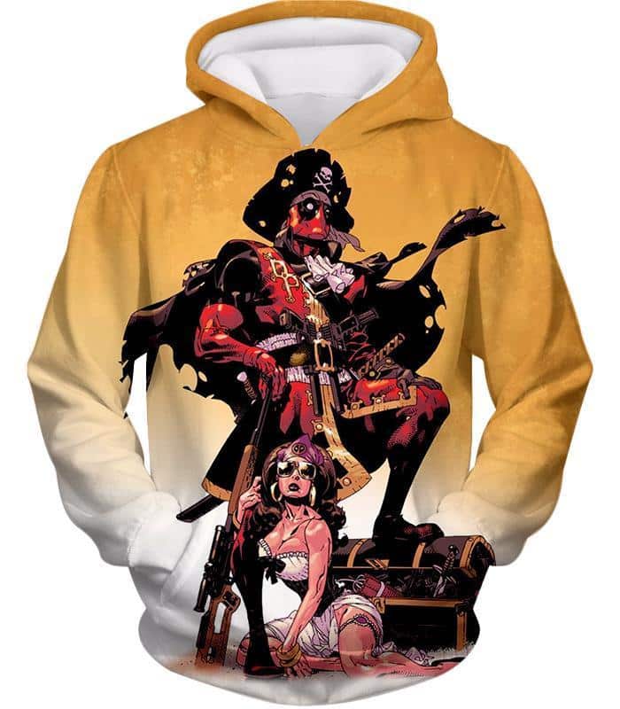 One Piece Hoodie - Deadpool Pirate Cosplay Yellow Hoodie