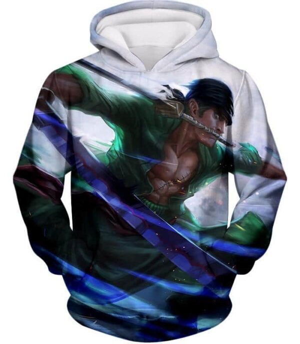 One Piece Hoodie - One Piece Swordsman Roronoa Zoro Action White Hoodie