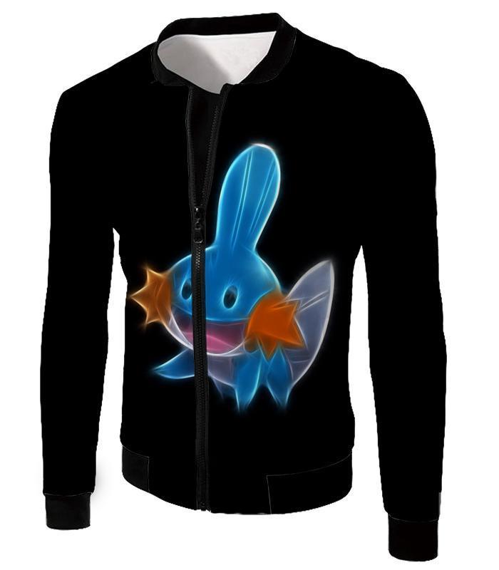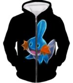 Pokemon Zip Up Hoodie - Pokemon Cute Water Type Pokemon Mudkip Cool Black Zip Up Hoodie