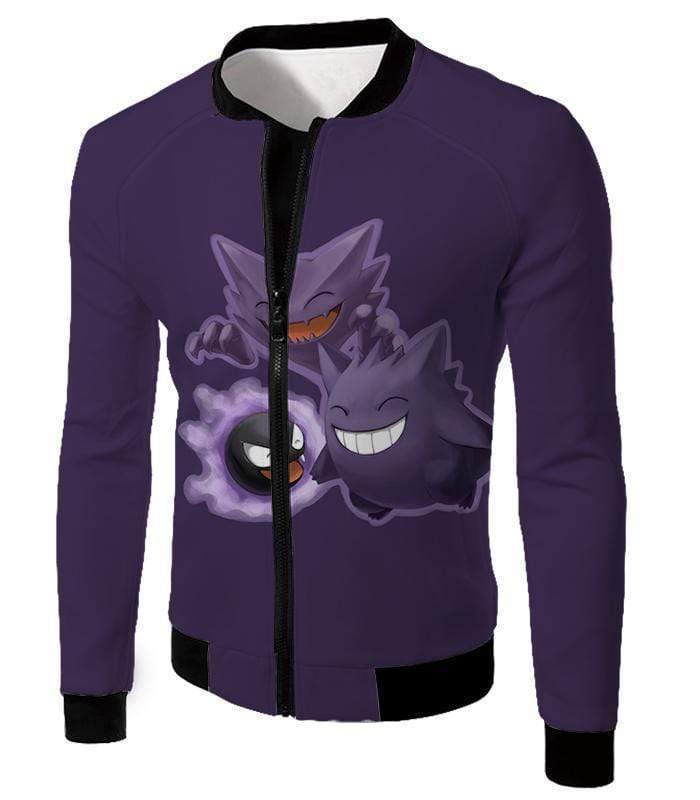 Pokemon Ghost Pokemon Trio Ghastly Hunter And Gengar Cool Anime Zip Up Hoodie - Pokemon Zip Up Hoodie