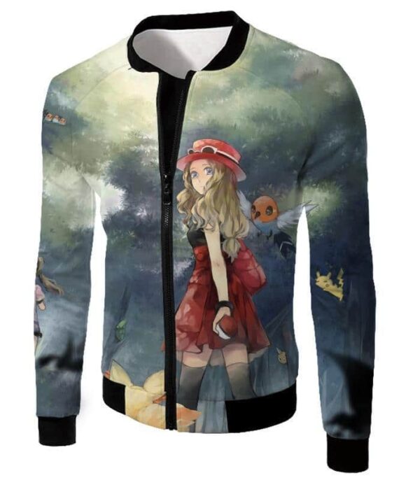 Pokemon Zip Up Hoodie - Pokemon Cute Pokemon X And Y Performer And Trainer Serena Cool Zip Up Hoodie