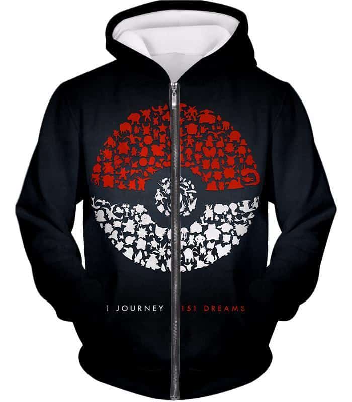 Pokemon Zip Up Hoodie - Pokemon Pokeball One Journey Pokemon Promo Black Zip Up Hoodie
