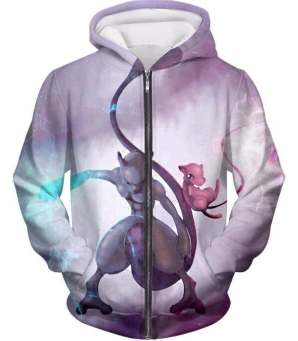 Pokemon Legendary Psychic Pokemons Mew X Mewto White Zip Up Hoodie