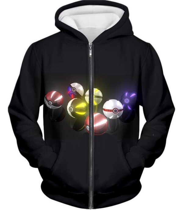 Pokemon Zip Up Hoodie – Pokemon All Types Of Pokeballs Black Zip Up Hoodie