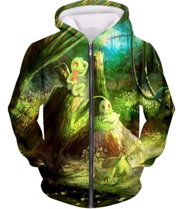 Pokemon Zip Up Hoodie – Pokemon Grass Type Treecko And Chikorita Cool Zip Up Hoodie