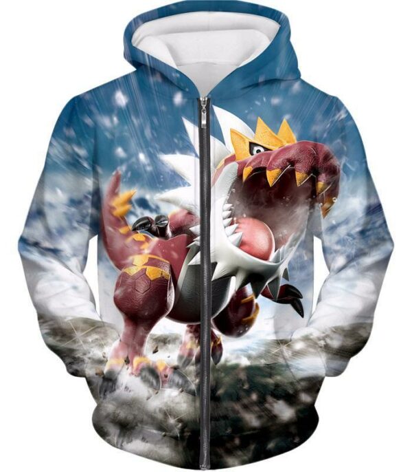 Pokemon Zip Up Hoodie – Pokemon Legendary Rock Dragon Fossil Pokemon Tyrantrum Cool Graphic Zip Up Hoodie