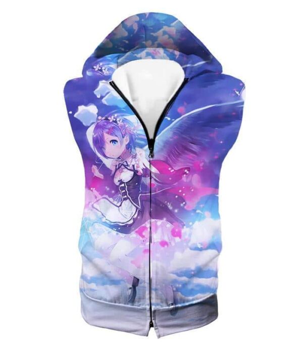 Re:Zero Cute Blue Hair Flying Anime Maid Rem Action Zip Up Hoodie