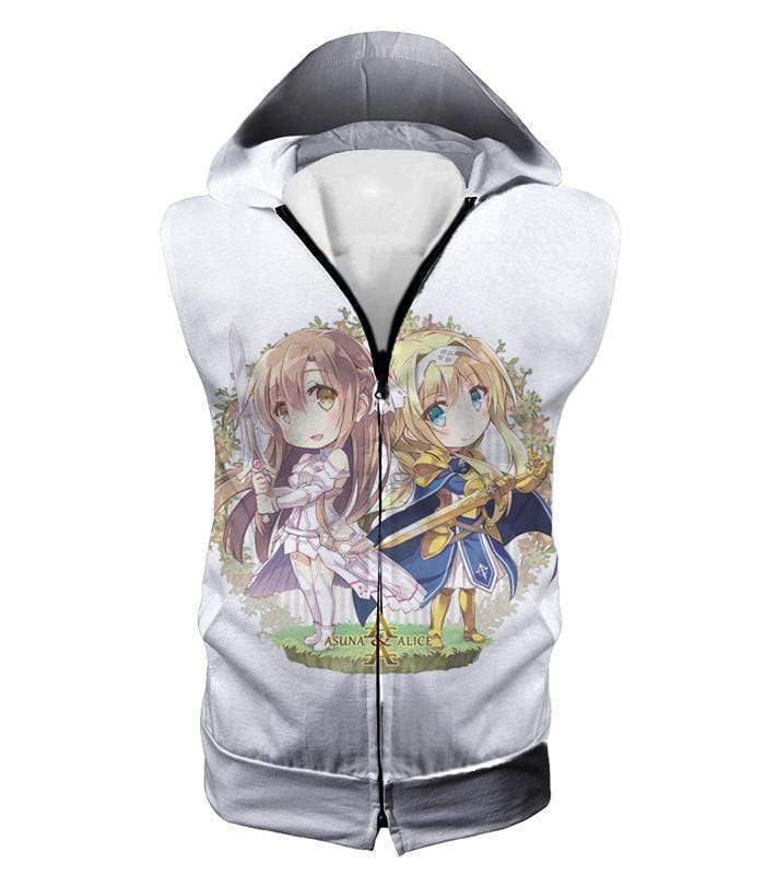 Sword Art Online Anime Girl Asuna And Alice Cool Anime Promo White Zip Up Hoodie - Sword Art Online Zip Up Hoodie