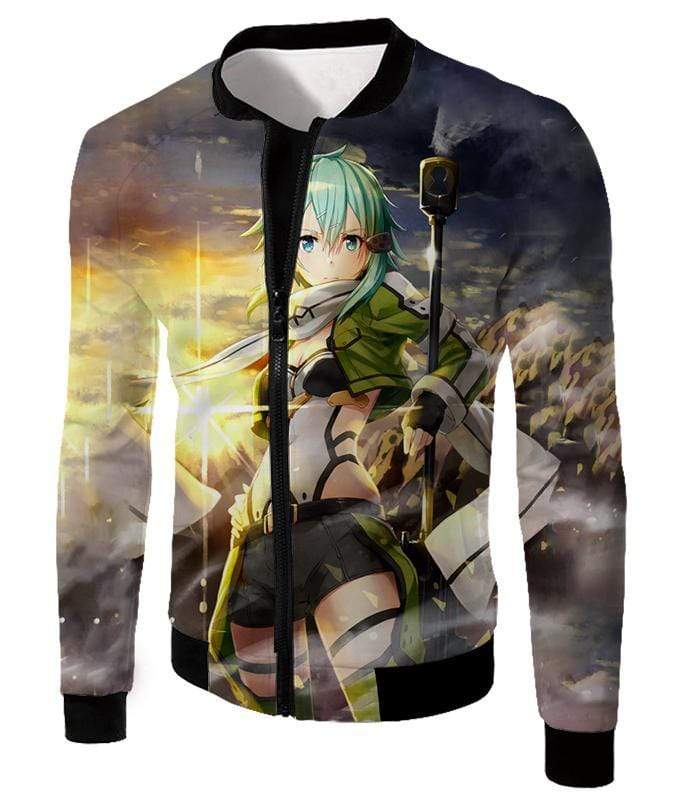 Sword Art Online Asada Shino Cool Marksman Gun Gale Online Avatar Action Promo Zip Up Hoodie – Sword Art Online Zip Up Hoodie