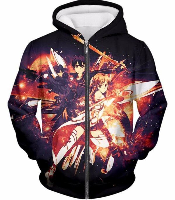 Sword Art Online Favourite Action Couple Kirito And Asuna Anime Graphic Zip Up Hoodie