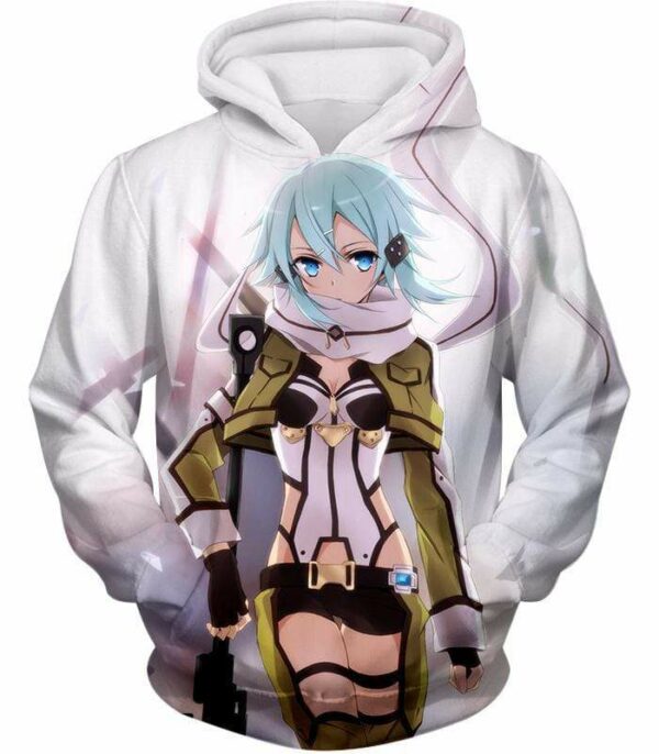 Sword Art Online Ultimate Sniper Gun Gale Online Player Asada Shino Cool White Hoodie - Sword Art Online Hoodie