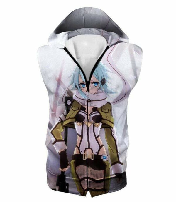Sword Art Online Ultimate Sniper Gun Gale Online Player Asada Shino Cool White Zip Up Hoodie – Sword Art Online Zip Up Hoodie