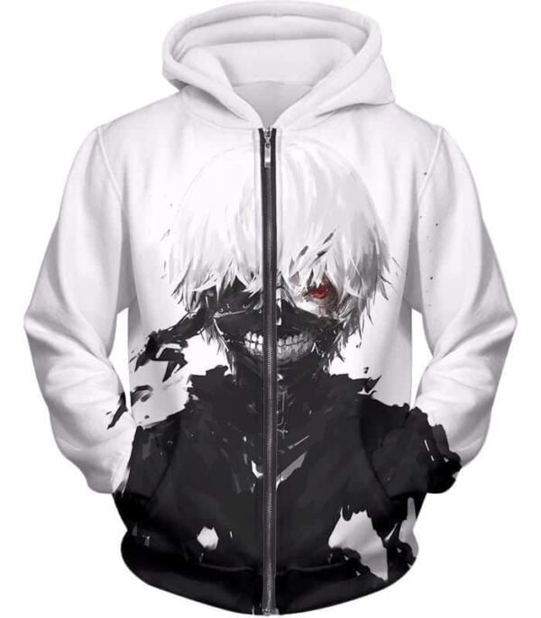 Tokyo Ghoul Cool Masked Ken Kaneki White Zip Up Hoodie – Anime Hoodie