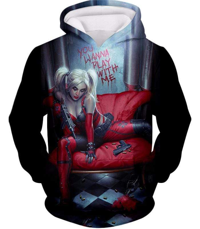 Ultimate Blonde Female DC Villain Crazy Harley Quinn Promo Black Hoodie